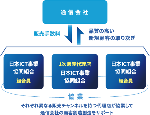 組合と加盟している企業、通信事業者の間のやりとりや、お金の流れはとてもシンプル。透明性が高く、通信事業者から組合へ来る情報も開示されているので、安心して利用できます。業務開始前はもちろん、多様な支援を受けながら、通信代理店に挑戦することが可能です。